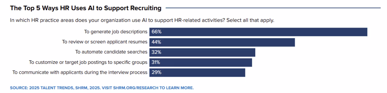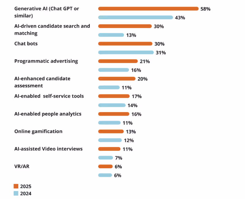 AI was named the #1 trend in talent acquisition for 2025, with 84% of HR professionals planning to use it in their recruitment efforts.