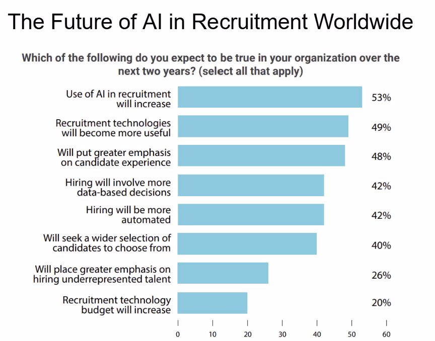 AI is heralding a whole new approach to recruitment, but it’s only just the beginning. Over half of recruiters believe AI in recruitment will expand in coming years. Here are some AI-related applications to recruitment that are coming down the road.