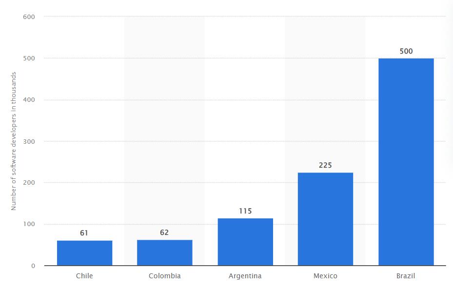 Second only to Brazil, Mexico has a massive developer talent pool with 225,000 developers. These numbers are sure to rise, as about 110,000+ engineers graduate in Mexico every year. This means Mexico will continue to have robust talent pools that U.S. tech companies can take advantage of.